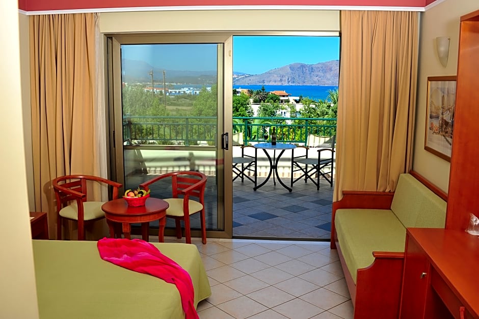 Enjoying side sea views from its balcony, this room comes with air conditioning, satellite TV, mini fridge and hairdryer.